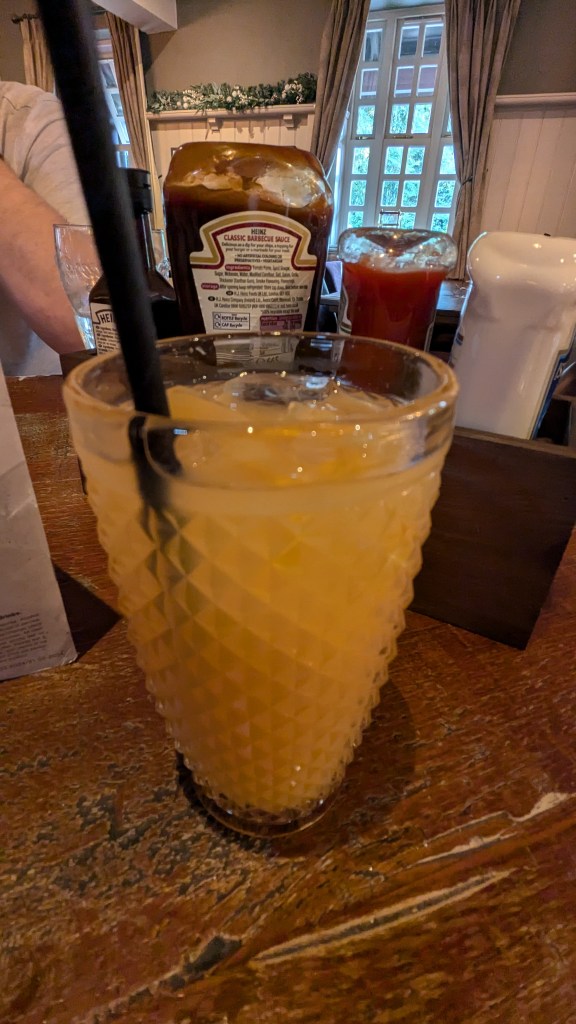 We eventually dropped my partner at the station so they could get their train, before Jake and I headed to the hotel. We chilled for a bit, before ending up at the pub on the hotel’s grounds, where we ordered dinner and had one of our semi-regular Big Chats, talking about how life has been treating us lately, relationships, our expectations for the coming weekend and the future of various GW games including the LotR game. I had a mediocre hunter’s chicken and a Sex on The Beach cocktail that tasted a little too strongly of alcohol for me – I haven’t been a heavy drinker since I left university, but I couldn’t get any other flavours out of my drink besides alcohol. I finished off the meal with a strawberry cheesecake, which I think might have been the best thing I ate on the entire trip, beautifully light and delicious.