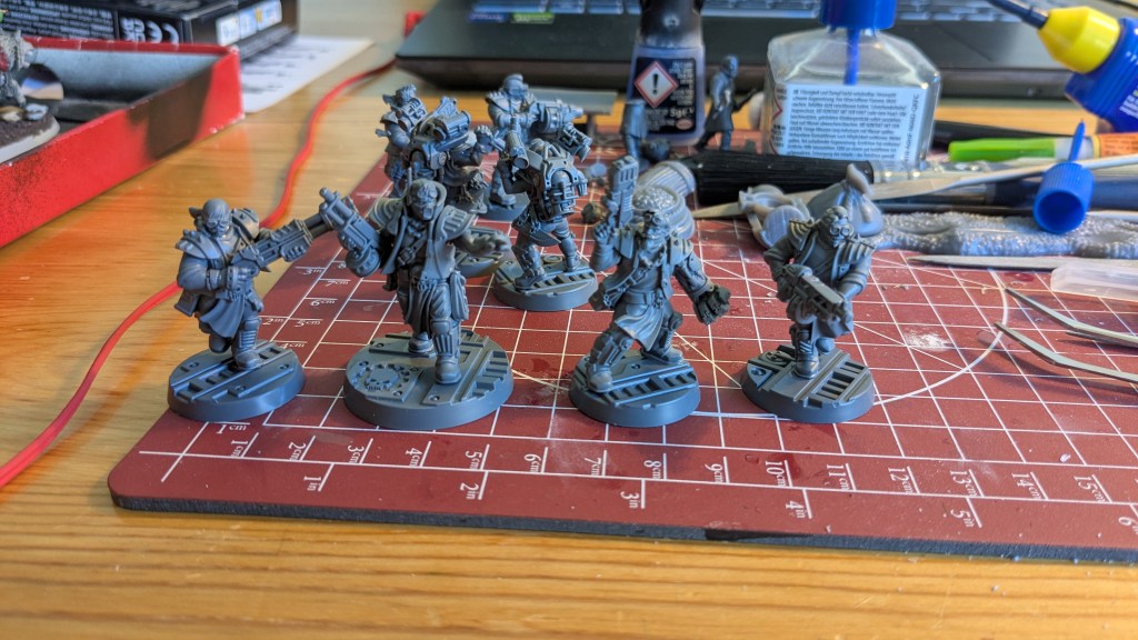 One of the things I’ve also been looking into this month is getting into Necromunda. I live near Winchester, home of the Hampshire Hammerers club, and it has a rather thriving Necro-scene that I would love to get involved in. To that end, I’ve been perusing Goonhammer’s rather extensive article collection on the game, reading and re-reading hundreds of words on the different varieties of scummer and considering my options on which gang to pledge my allegiance to. In the end, I’ve picked up a House Orlock gang and have been slowly building and painting up a small starter force. I’m yet to get any games in – hell, I still need to finish painting them – but I’m looking forward to getting them on the table and learning a new system.