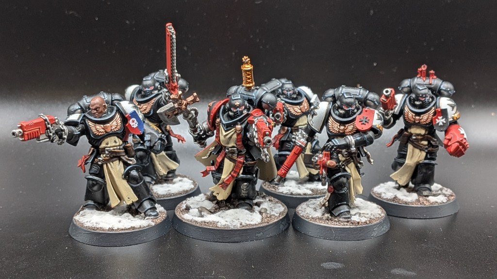 I also finished painting up some initiates for my Crusaders squad. These took quite a while to do, which does make me worry a little bit about how long this army is going to take – one month for six minis is not exactly lightning pace. At this rate, I expect I’ll have a full, 2,000-point army ready for the launch of the 13th edition. Oh well…